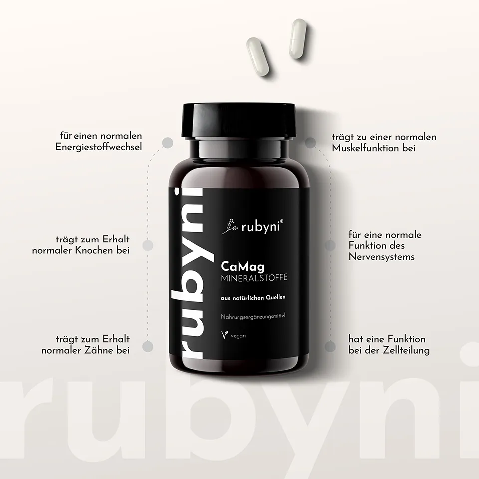 rubyni® CaMag MINERALS is a dietary supplement with calcium and magnesium from high-quality natural mineral sources.