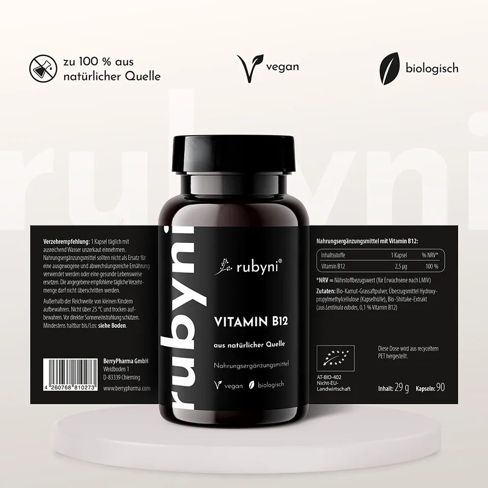 rubyni® Vitamin B12 can help you to cover your daily vitamin B12 requirement from a natural and vegan source.
