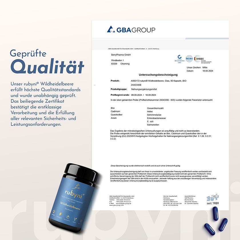 Nahrungsergänzungsmittel aus der Wildheidelbeere, 100% biologisch, vegan, gluten- und lactosefrei.