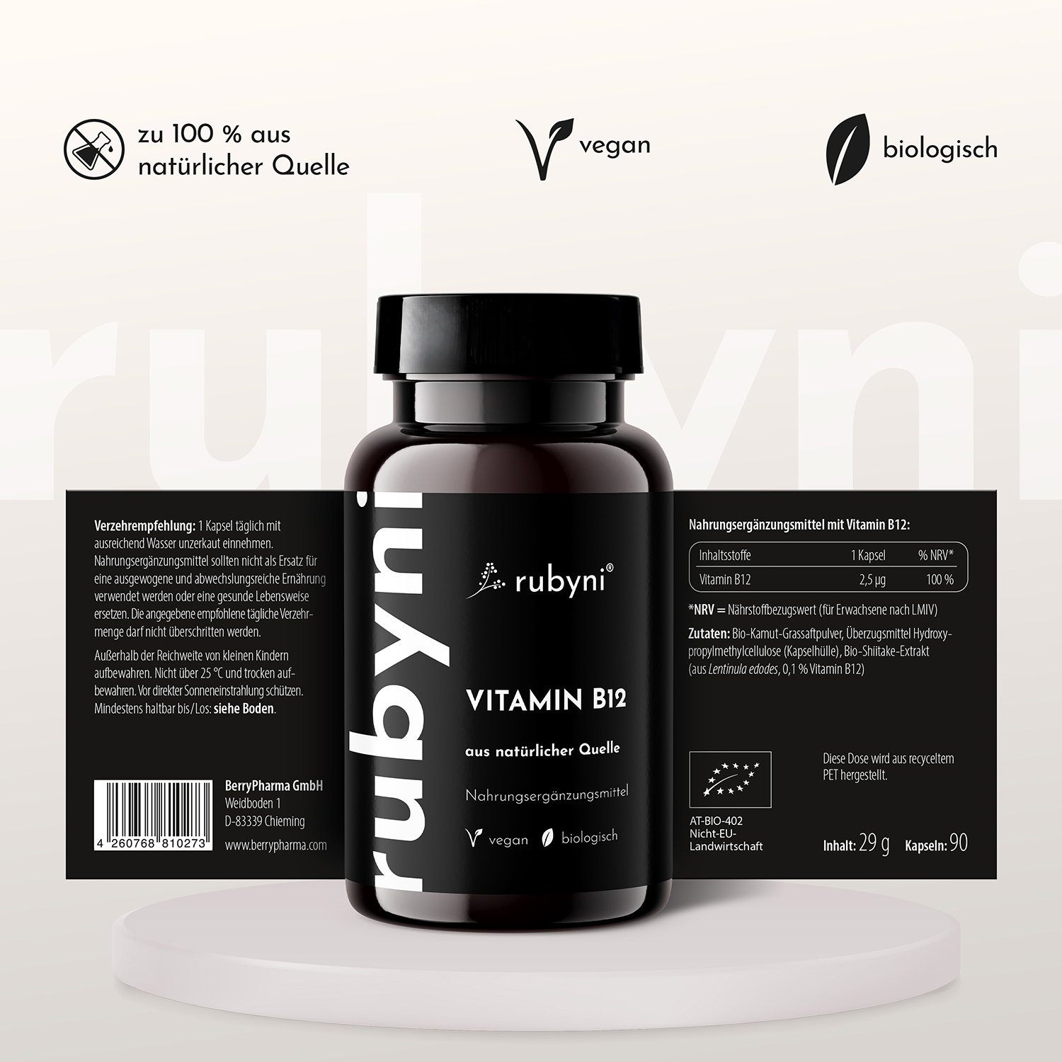 One capsule contains 2.5 micrograms (μg) of vitamin B12 (from shiitake mushrooms)